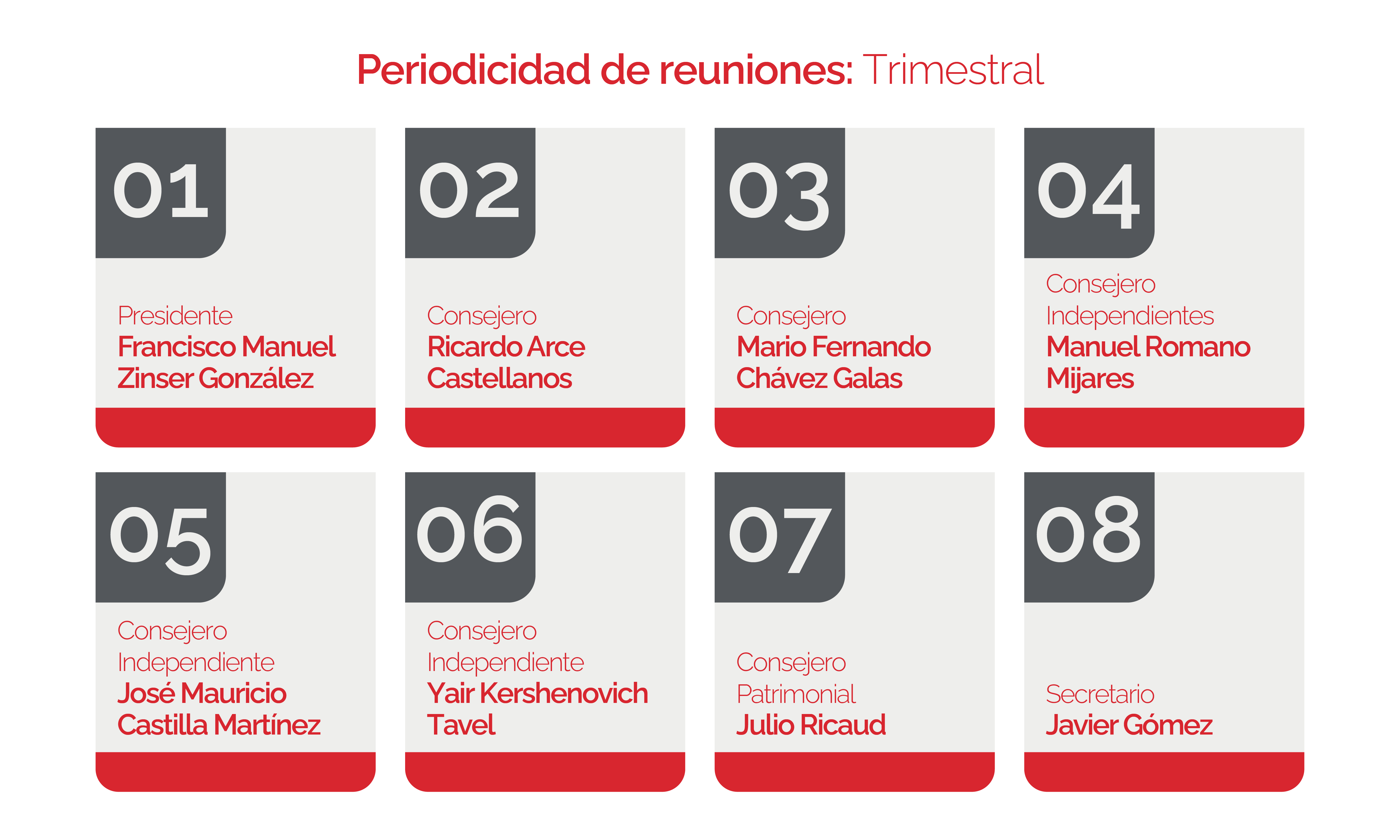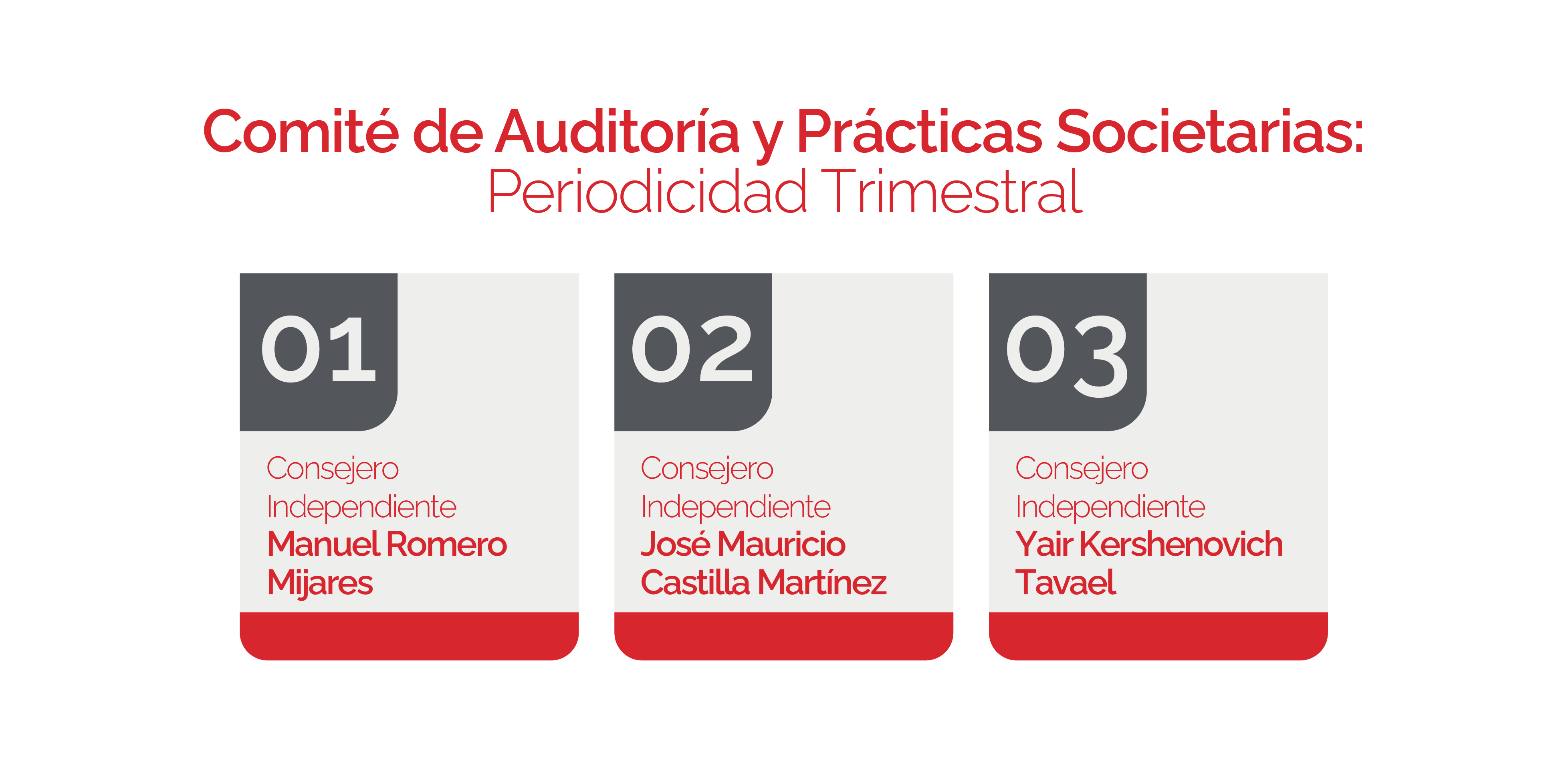 Conformado por 3 consejeros independientes - Se reúne trimestralmente